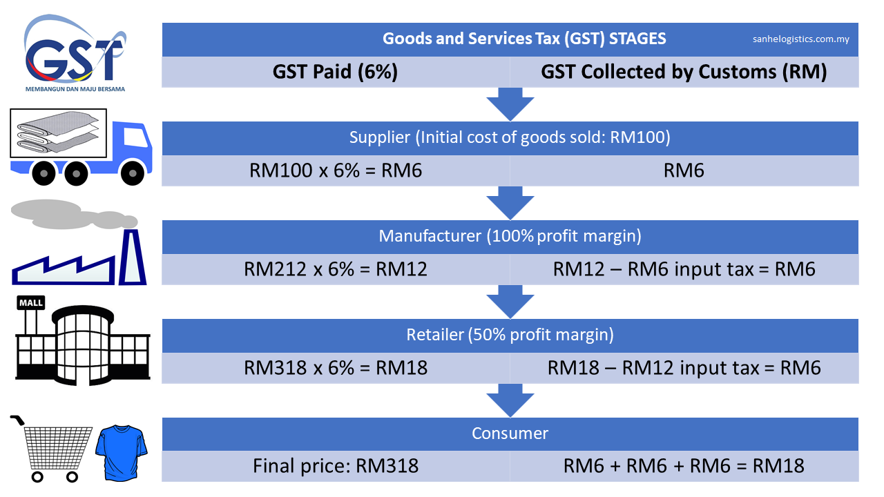 Sales and Service Tax (SST): are actually covered by 2 separate tax laws on a wide variety of goods and services at a single level implemented in 1970s. The Sales Tax Act 1972 is a single-stage tax charged typically at the manufacturer’s level. The Service Tax Act 1975 is a single-stage tax charged at the consumer’s level except at tax free zones. The sales tax was at 10% and service tax was at 6% respectively prior to being replaced by GST in 2015.